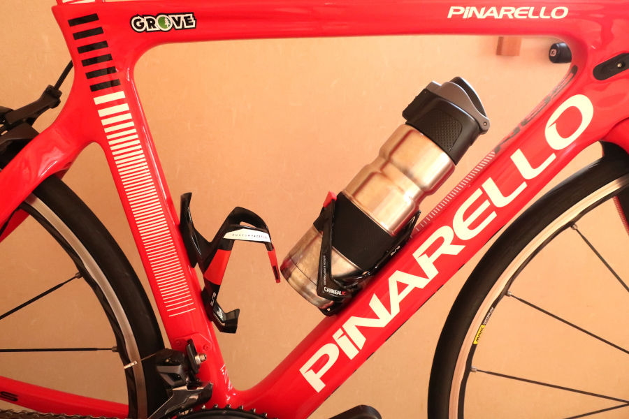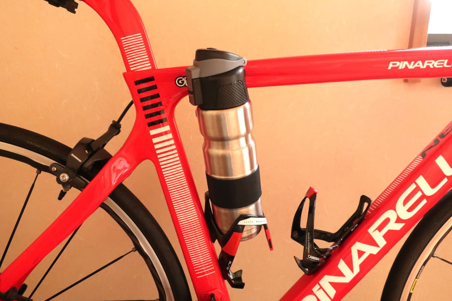 ただ、結構取り外す時にトップチューブにかこんかこん、とぶつかりますので、もう少し取り出しやすいタイプのボトルケージにトライしてみるのもアリかな、とも思いました。