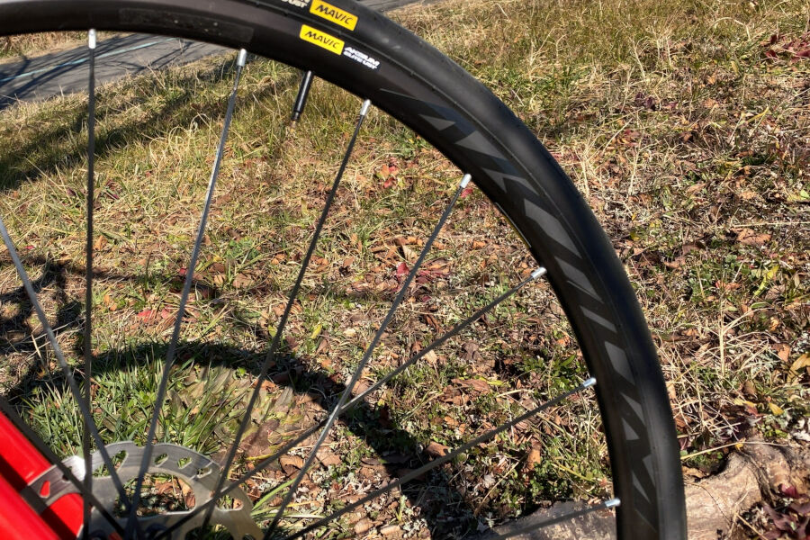 最初にマビックのマークが目に飛び込んできた為、キシリウムエリートかキシリウムプロかな、と思い込んでいたのですが、乗り始めてみて「あれ? 何か重たいかも?」と思って停車して確認したところアクシウムエリートでした。