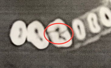 で、今回はそんな経緯があったので、副鼻腔炎になった直後のCTスキャン画像と、副鼻腔炎が完治した後の画像、双方が揃っていたのですが、副鼻腔炎発症直後には目で見て分かるような大きな亀裂は確認されなかったのが、副鼻腔炎が完治した際には、ぱっかりと歯が割れていることが確認されました。