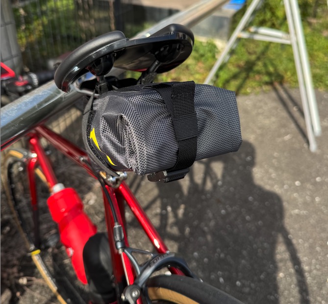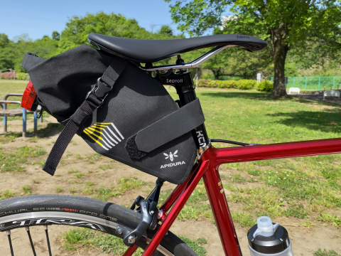 先日購入したアピデュラのツールパックだと、見事にシートポストのスペースを埋め切ってしまっています。