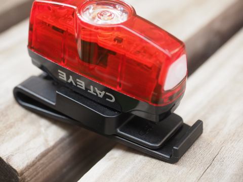 キャットアイのリアライト用に用意されている専用のパーツ、セーフティライト用クリップ C-2を使うと、「引っ掛けて」使うことができるようになります。
