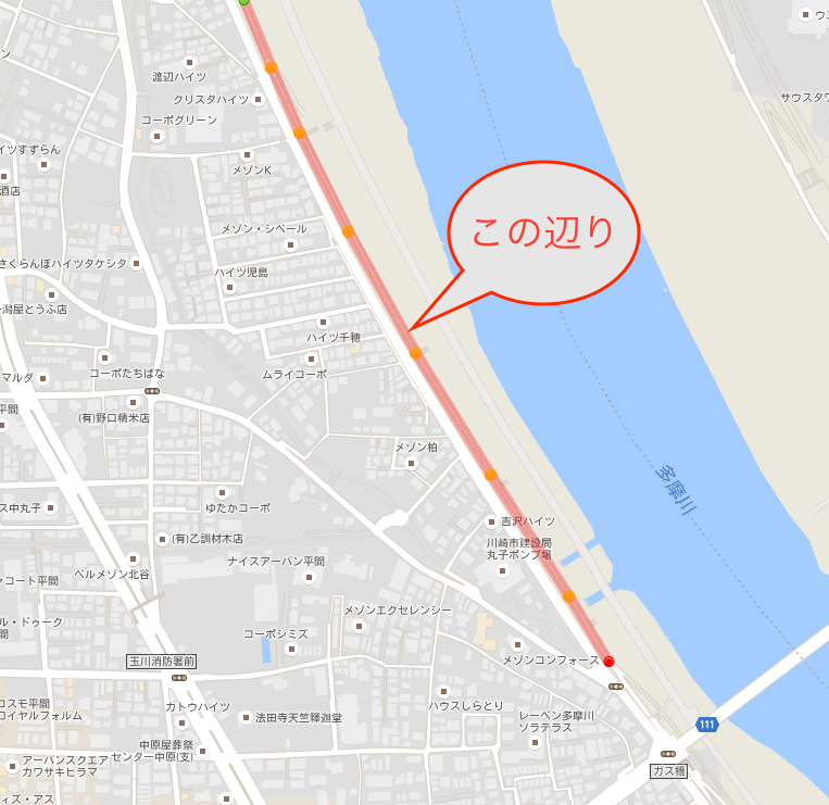 具体的な道路状況ですが。多摩川サイクリングロードのガス橋上流側。この辺りって路線が結構ガタガタなんですよね。当然アスファルトで舗装されているわけですが、以前の鉄下駄でこの辺りを30km/hrで走ろうものなら、腕や上体にガンガン衝撃が来てキツいです。それがロングライドの帰路だったりすると、その衝撃がしんどい為、自然と速度も20〜25km/hrに下げてしまうんですよね。