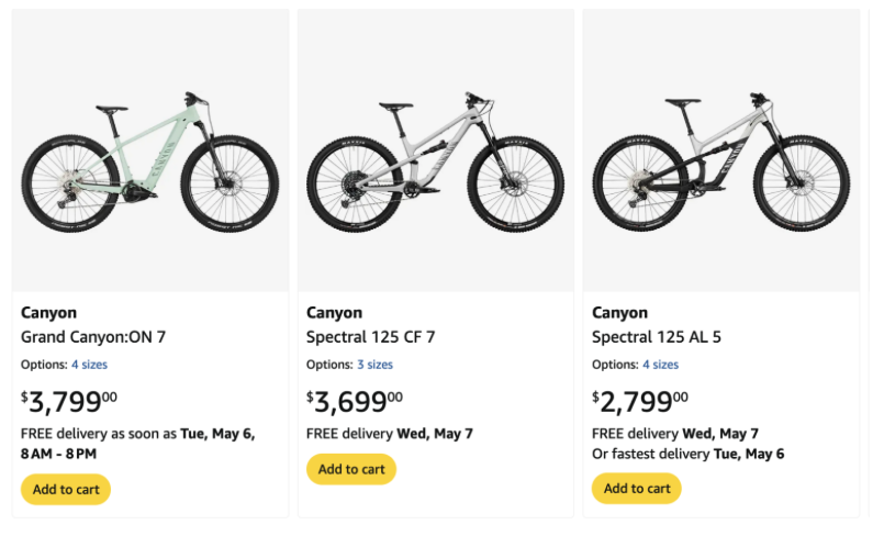 米国Amazon で一部のCanyon製品が購入可能に