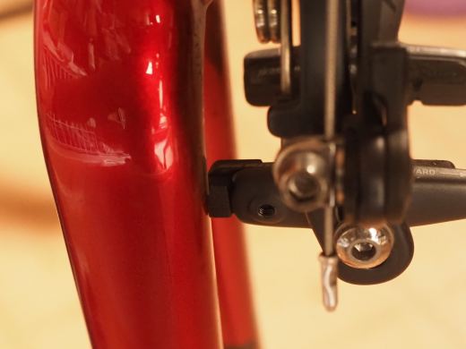 フロントのシュー交換の際に、ブレーキシューがフロントフォークに干渉してしまいました。