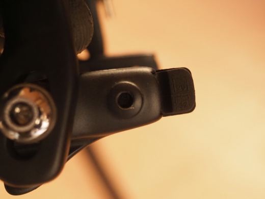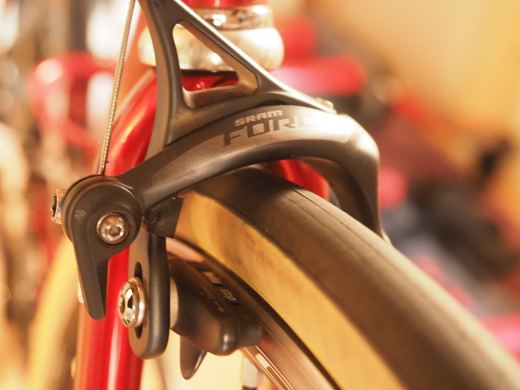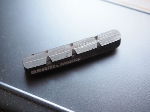これまた、シマノのコンポ(105とアルテグラ)では、フラッシュプロのブレーキシューは手で最後まで押し込むことができたのですが、スラムは硬かったです。もしかして真冬だから?