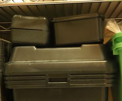 あまり美しくはないですが、大型のツールボックスの上に重ねておくこともできますし、何かと収納し易いですね。