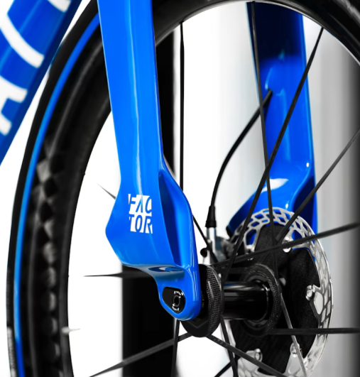 フレームについては、Factor ONE独自の「Vane 40」ツインダウンチューブをベースにしつつ、Bugattiのハイパーカー「シロン」や「トゥールビヨン」を彷彿とさせる専用パーツを装備。